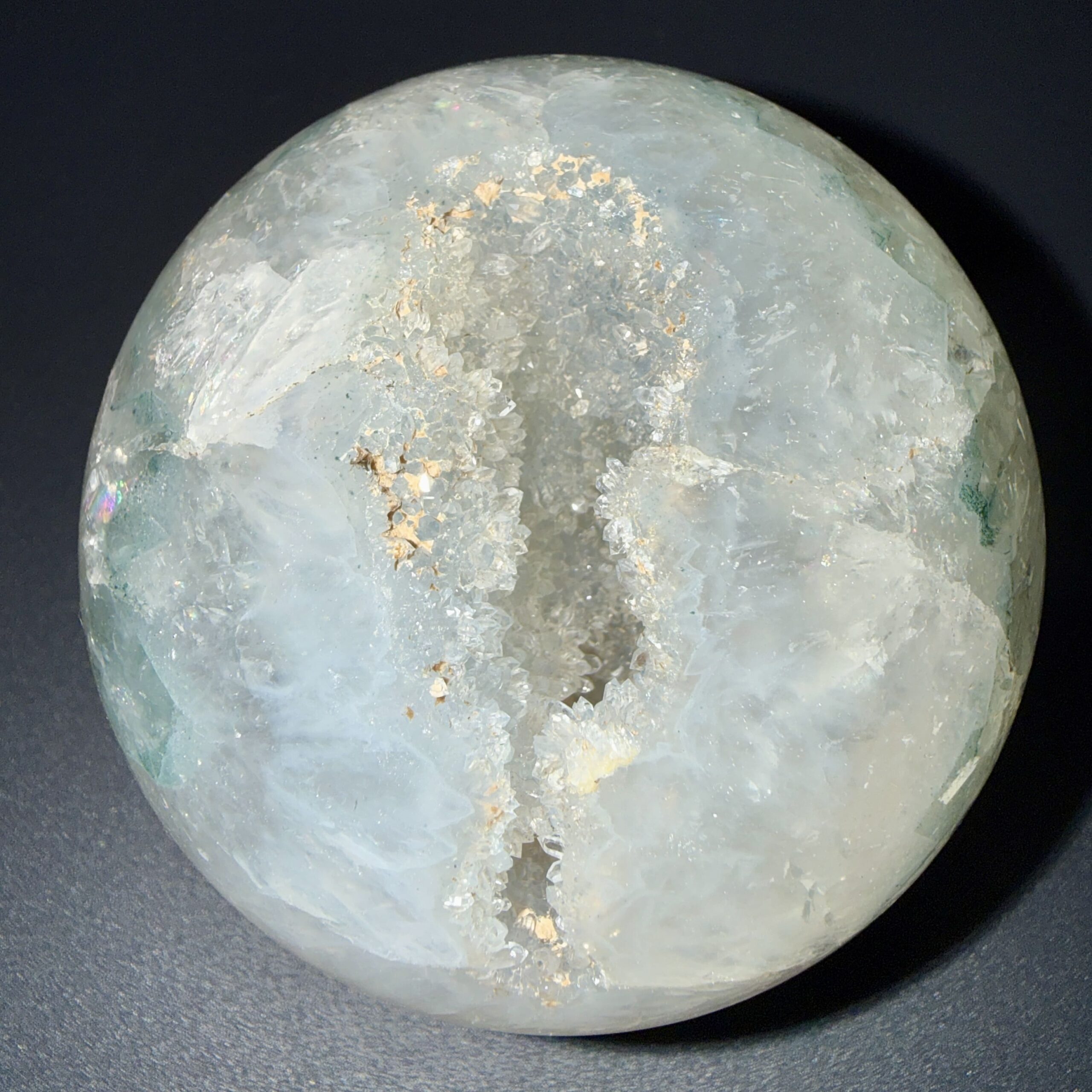 Sphère en agate naturelle, polie pour révéler la douceur de ses nuances et la beauté de la pierre. Une pièce minérale élégante, idéale en décoration, en collection ou à offrir.